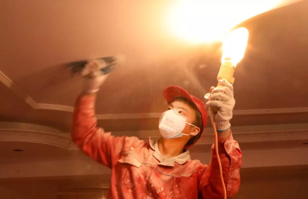 1. 基层处理:为防止原房屋建筑大白在油工湿作业时脱落,所以原不耐水大白需要铲除。如遇返碱墙面需要用草酸溶液涂刷处理,长毛发霉墙面可喷洒除霉菌喷剂处理。界面剂涂刷可有效去除墙棚面浮灰,增加石膏结合强度,封闭原建筑灰浆内有害气体。