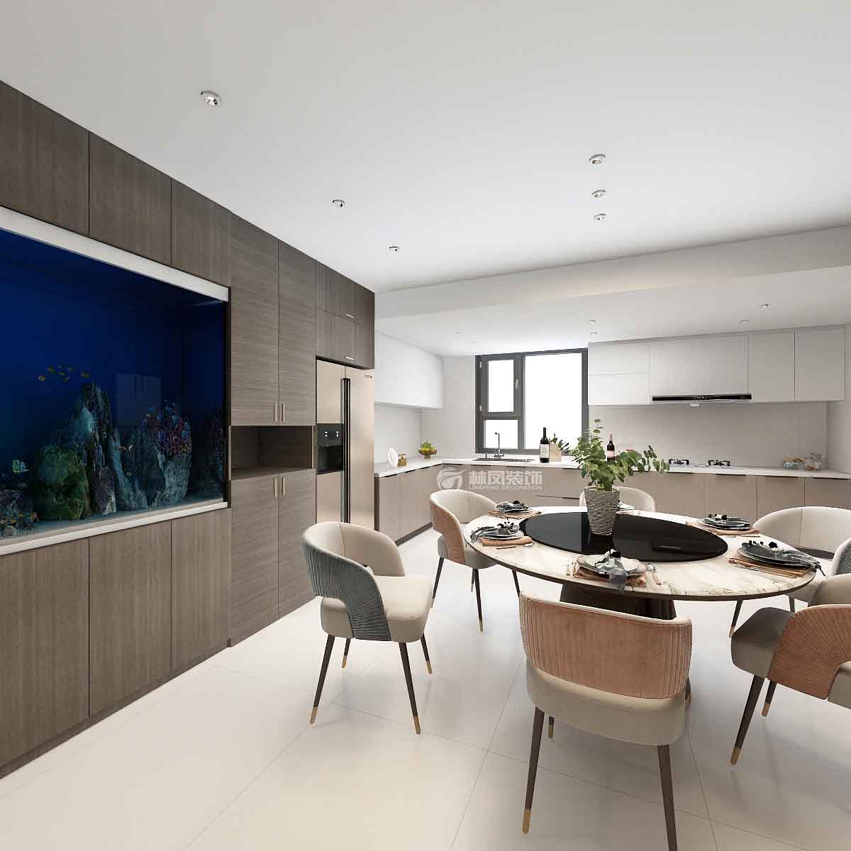 三室两厅一厨两卫,高层整体采用美式风格,色调以深色为主,体现美式的居家感和温馨感。