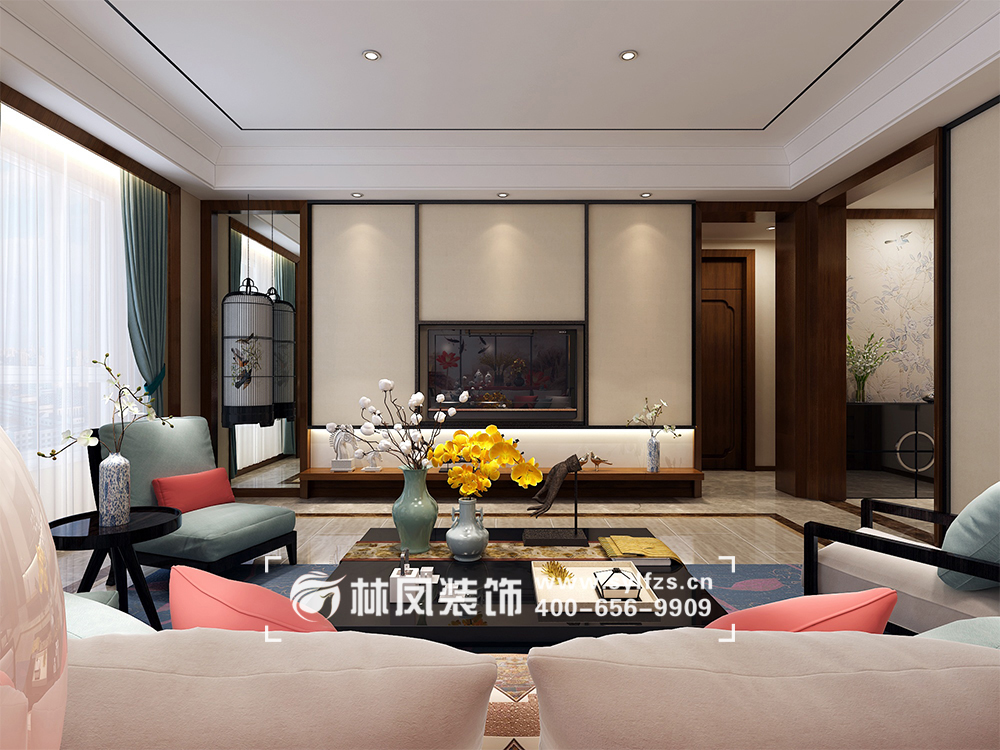 设计理念:业主喜欢沉稳且简洁明了的风格,所以为其定位为新中式风格。成熟稳重又不失优雅。