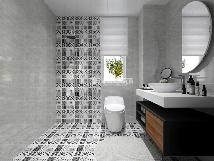地砖花纹砖上墙既能点缀,又让单调空间那么特别。洁具采用耐用黑色与原木色为基调,搭配暖白色台面,一切那么自然。
